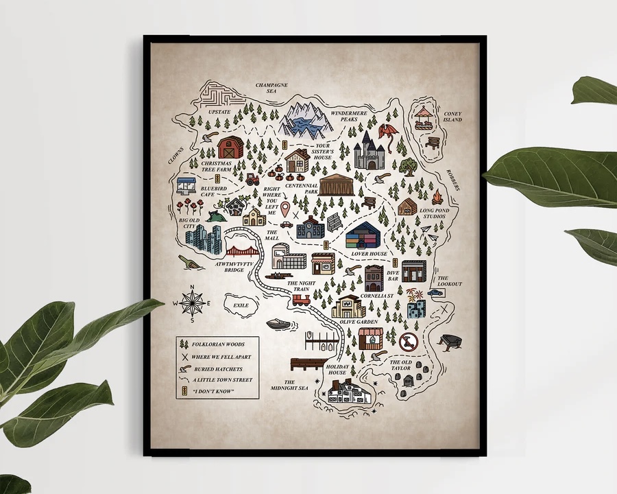 You must be living under a rock, if you’re yet to see Emily Kelley’s TikToks attempting to create an illustration for every Taylor Swift song (spoiler: she’s almost finished!). Born out of the Covid-19 quarantine, Emily turned this illustration project into a flourishing business by selling prints and apparel of the drawings. Emily evokes Taylor’s lyrics and sentiments beautifully in her illustrations. She’s even creating a complete Taylor Swift world through her ‘That Little Town Street’ (including shops like ‘Best Dress Boutique’ and ‘New Soundtrack Records’) and ‘A Place In This World Map’ (plotting key Swiftie locations such as a Christmas Tree Farm and the infamous Lover house).