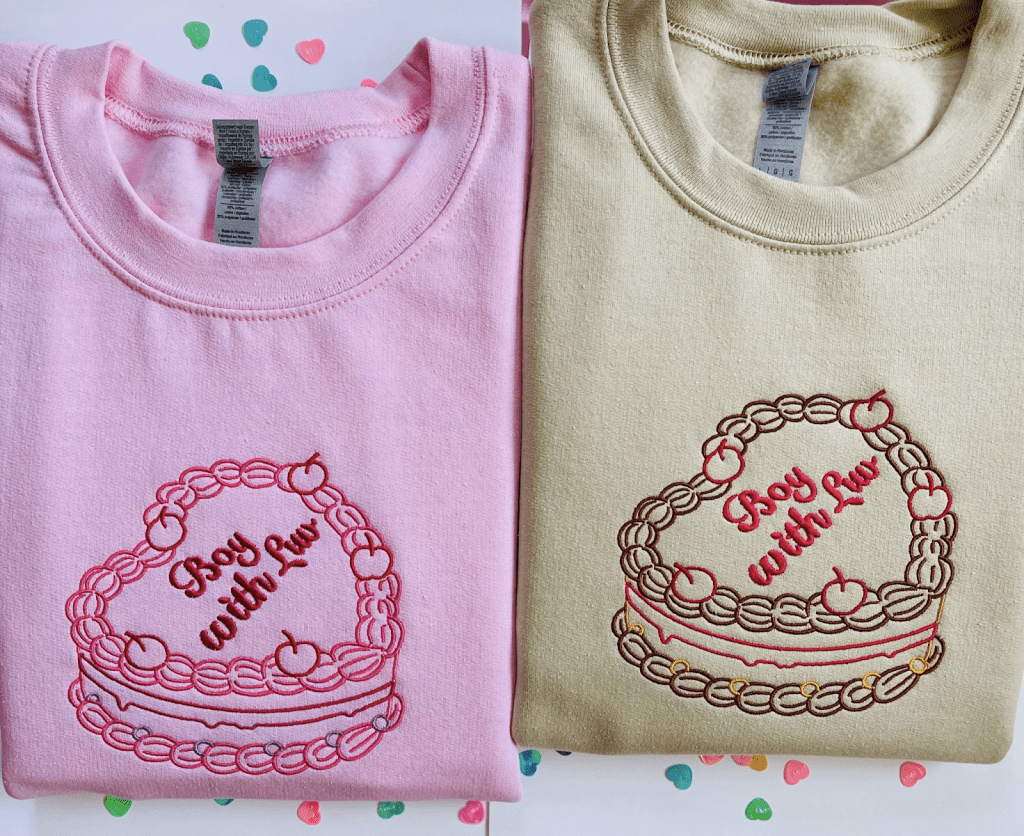 MuseThreadz aims to create affordable and inclusive apparel for stans, most notably for fans of Harry Styles and BTS. MuseThreadz specializes in embroidered sweaters, each detailed with intricate designs to represent different songs, such as a cute, instagrammable ‘Boy With Luv’ cake and a ‘Fine Line’ sweater featuring Harry’s infamous butterfly tattoo. MuseThreadz also sells printed t-shirts and tote bags – their glitter crop tops, such as the ‘As It Was’ one below are iconic!